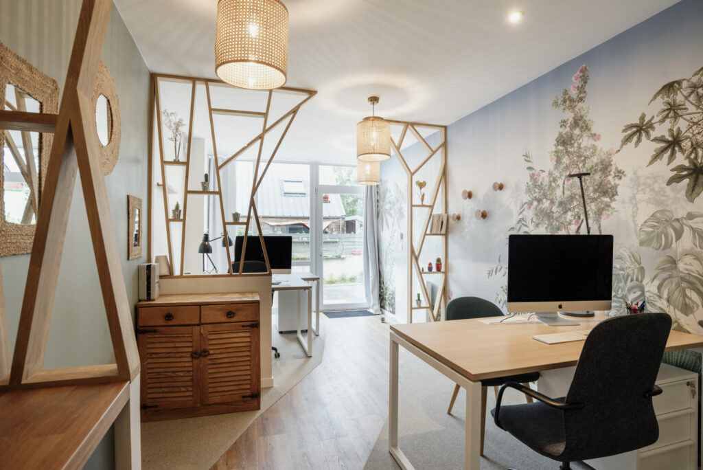 Local sur 2 niveaux, étroit et tout en longueur, transformé en bureaux.
