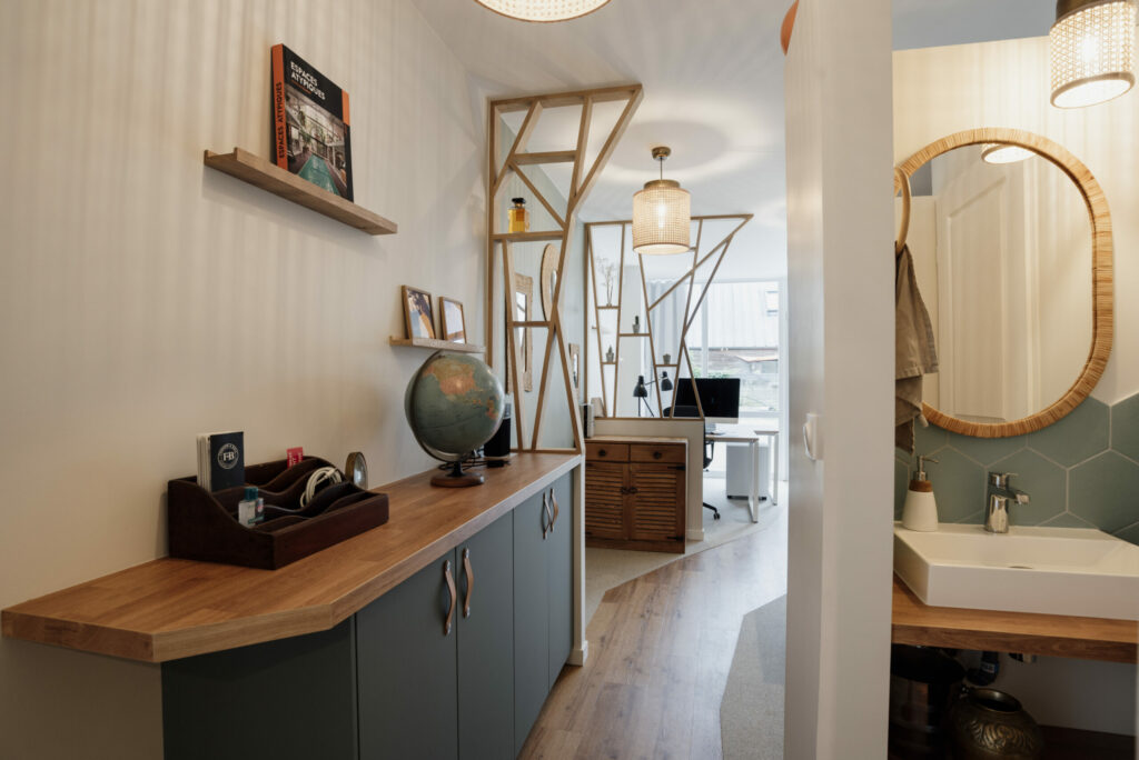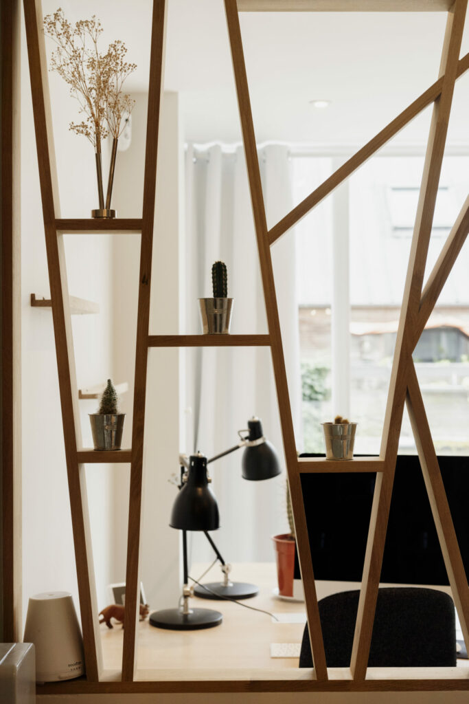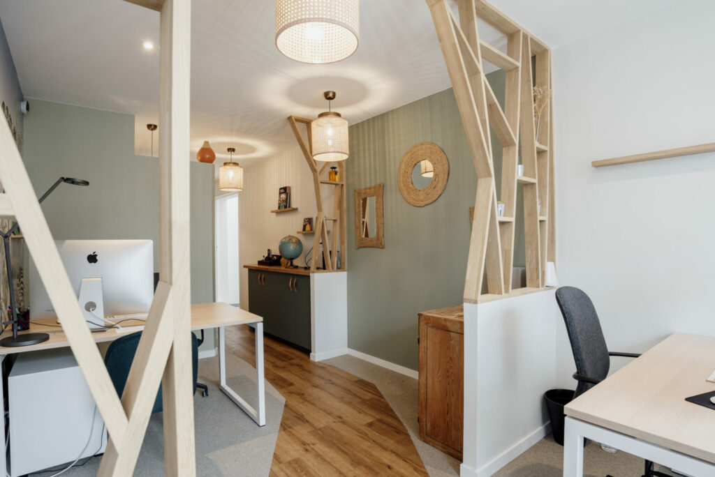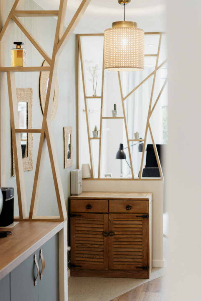Utilisation de claustras sur mesure pour séparer les espaces et garder de la profondeur et lumière !